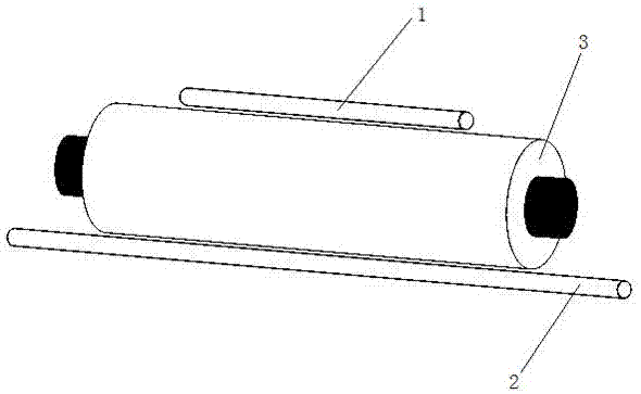 该长压箔辊2采用铝质材料制成且安装在铜箔分切机的压辊架上,其长度略大于铜箔成品3的幅宽。