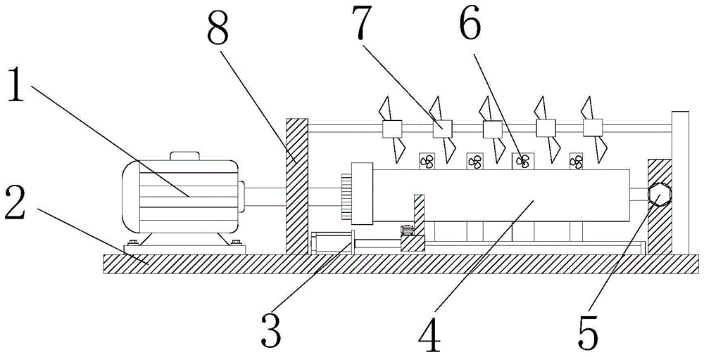 2.根据权利要求1所述的一种高效率纸管分切机,其特征在于:所述滚筒(4)靠近固定螺栓(5)的一侧通过限位孔的方式进行固定。